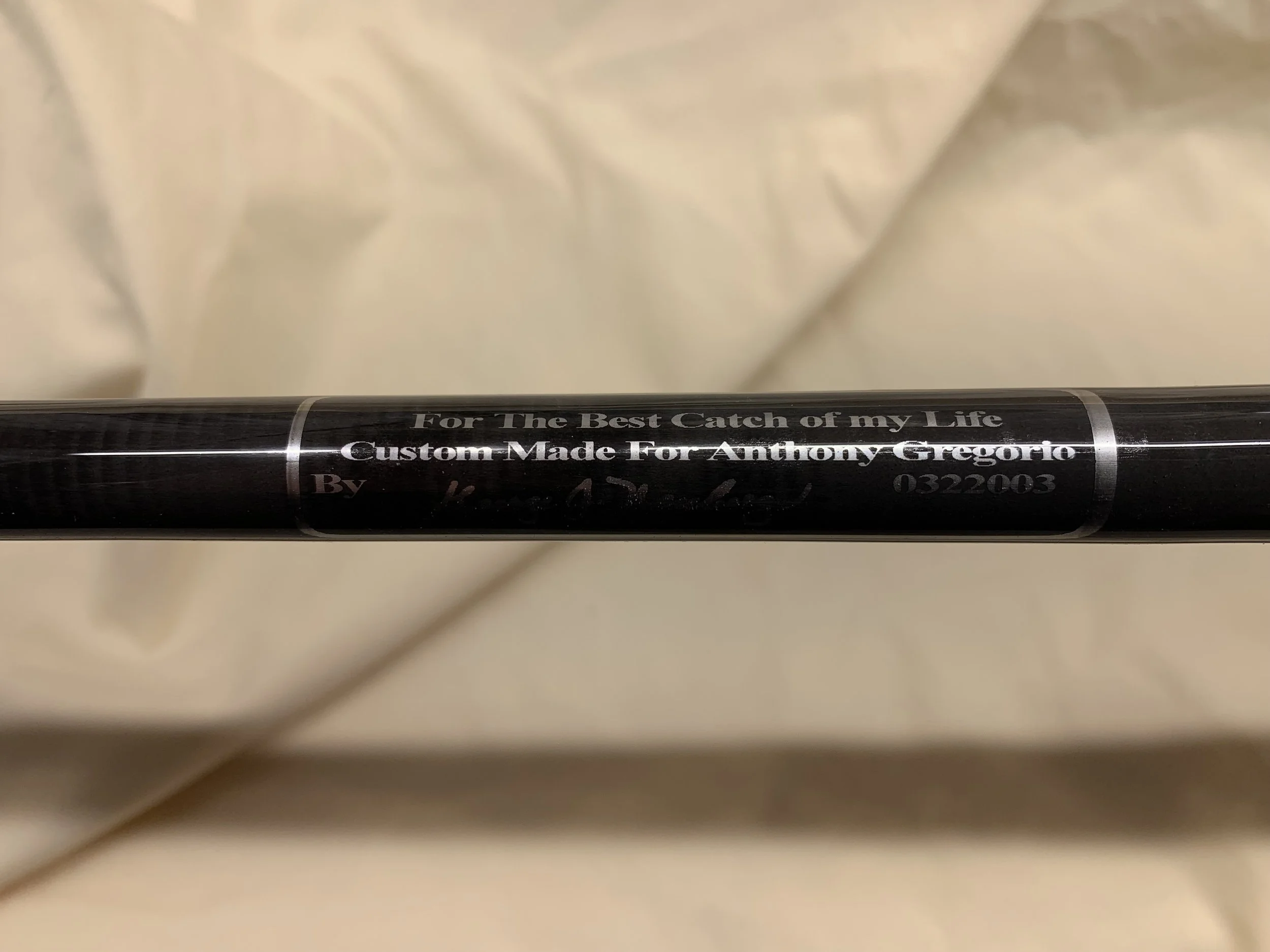 This rod was fabricated using a Lamiglas 13'4", 2 piece Fiberglass, 3-8 oz, 25-40# test line.